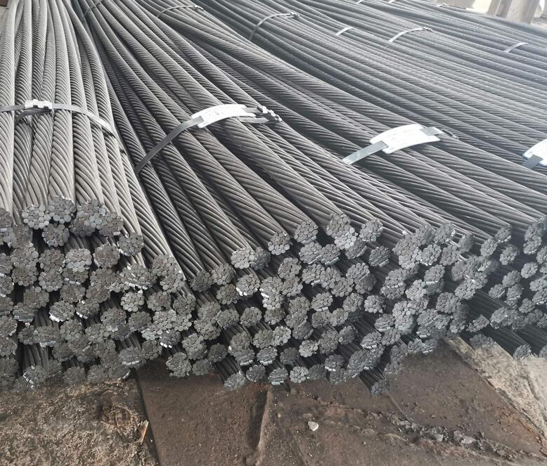 預(yù)應(yīng)力混凝土鋼絞線。預(yù)應(yīng)力鋼絞線是由2、3、7或19根高強(qiáng)度鋼絲構(gòu)成的絞合鋼纜,并經(jīng)消除應(yīng)力處理(穩(wěn)定化處理),適合預(yù)應(yīng)力混凝土及類似用途。預(yù)應(yīng)力鋼絞線的主要特點是強(qiáng)度高和松弛性能好,另外展開時較挺直。常見抗拉強(qiáng)度等級為1860兆帕,還有1720、1770、1960、2000、2160、2230、2360兆帕之類的強(qiáng)度等級。這種鋼材的屈服強(qiáng)度也很高。