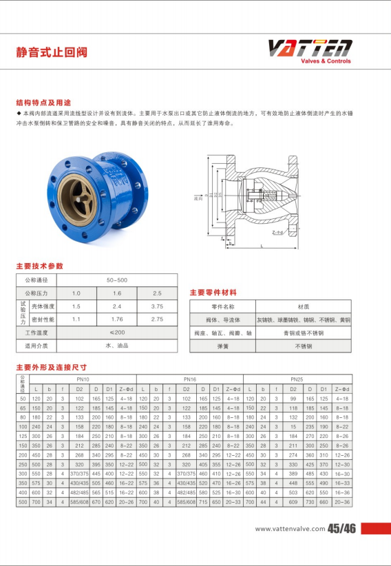 靜音式止回閥。泵閥內(nèi)部流道采用流線型設(shè)計(jì),沒有倒流體,主要用于水泵出口或其他防止液體倒流的地方,可有效的防止液體倒流時(shí)產(chǎn)生的。水錘沖擊水泵倒轉(zhuǎn)和保衛(wèi)管路的安全和噪音,具有靜音關(guān)閉的特點(diǎn),從而延長(zhǎng)了使用壽命。