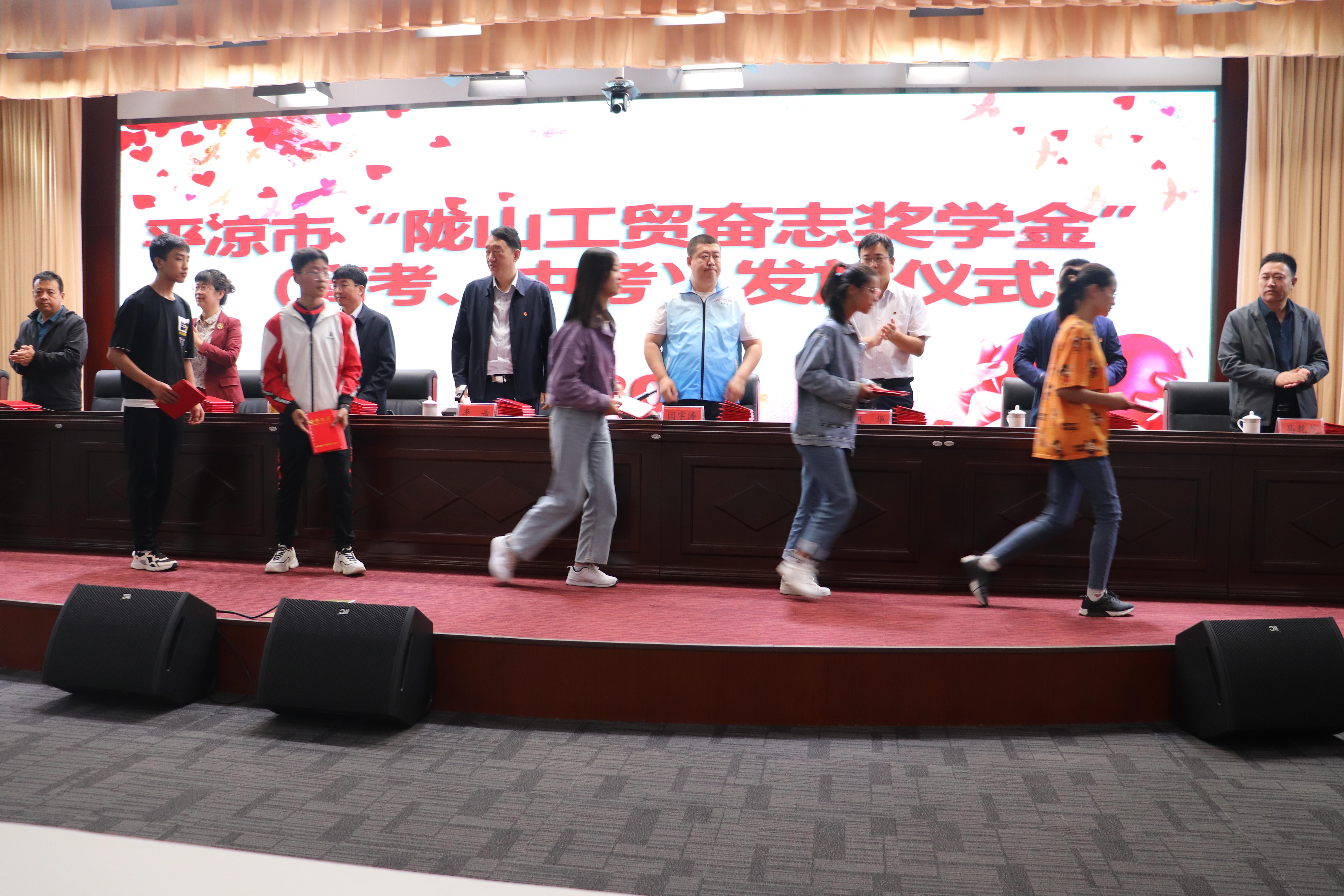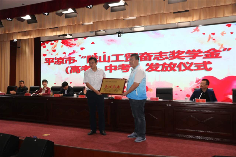 發(fā)放儀式上,平?jīng)鲭]山工貿(mào)有限責(zé)任公司總經(jīng)理閆宇濤先生作了致辭,勉勵(lì)同學(xué)們要樹(shù)立遠(yuǎn)大理想,樂(lè)觀勇敢,用自己的勤奮和努力創(chuàng)造美好的未來(lái),努力成為國(guó)家的棟梁之才;獲得“平?jīng)鲭]山工貿(mào)奮志獎(jiǎng)學(xué)金”的21名高考優(yōu)秀學(xué)子和30名中考優(yōu)秀學(xué)子現(xiàn)場(chǎng)領(lǐng)取了獎(jiǎng)學(xué)金及證書(shū);受獎(jiǎng)勵(lì)學(xué)生代表向企業(yè)和社會(huì)各界愛(ài)心人士表達(dá)了衷心的感謝,表示必將飲水思源,銘記幫助之恩,勵(lì)奮斗之志,發(fā)奮學(xué)習(xí),不負(fù)厚愛(ài)和希望。同時(shí),共青團(tuán)平?jīng)鍪形蚱經(jīng)鲭]山工貿(mào)有限責(zé)任公司頒發(fā)了捐資助學(xué)獎(jiǎng)牌,對(duì)愛(ài)心企業(yè)的愛(ài)心捐資幫助表示衷心的感謝。